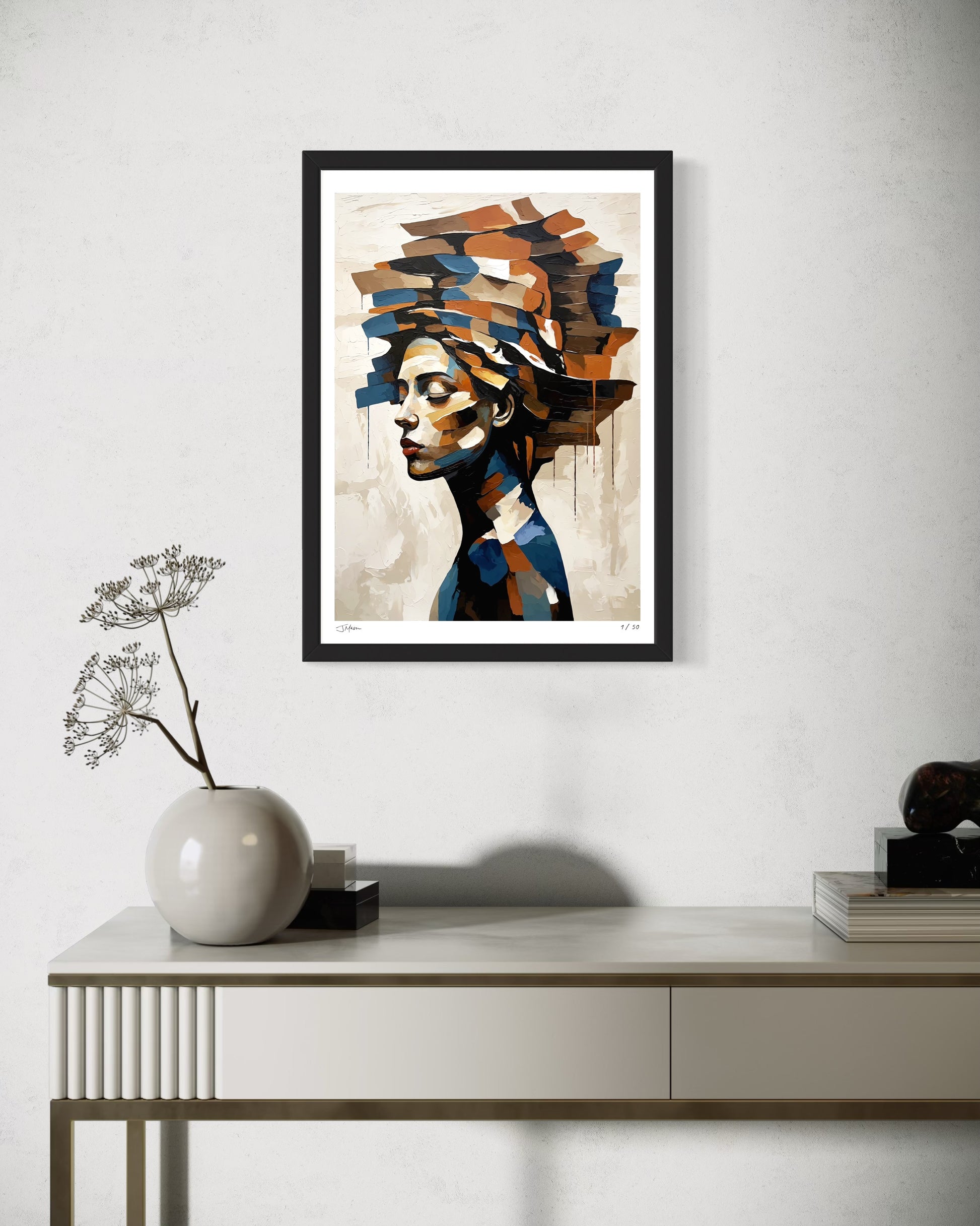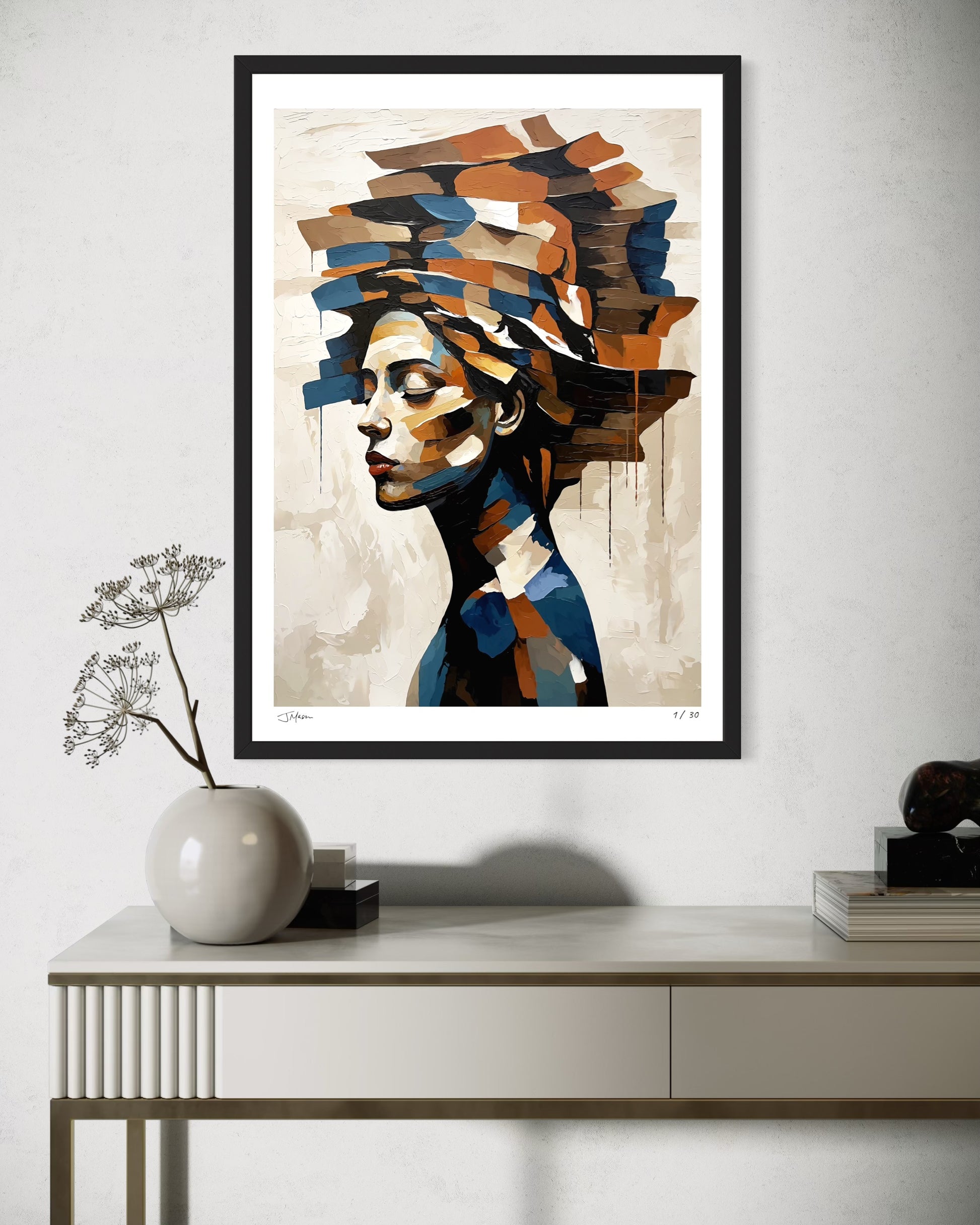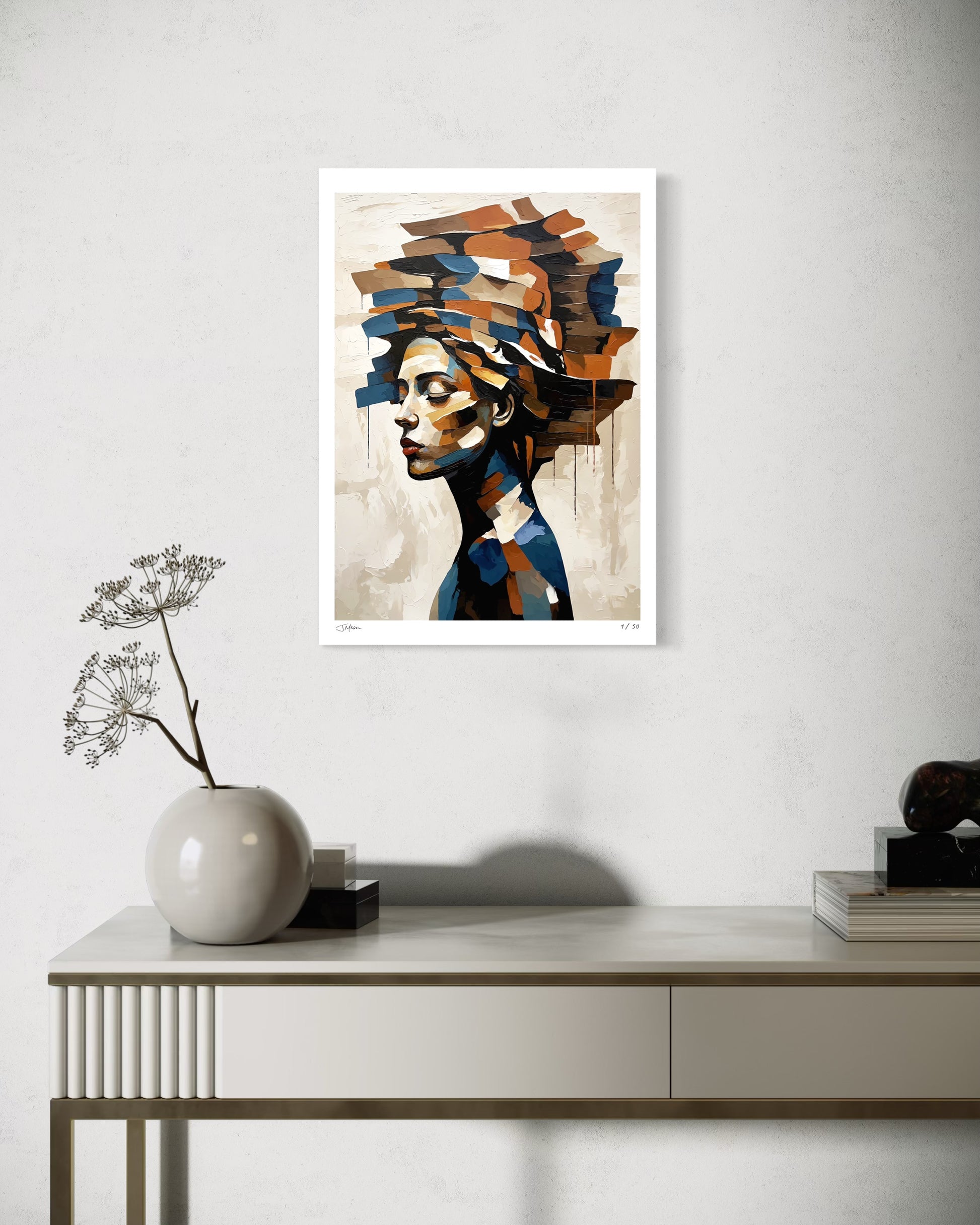 Layered Identity is a contemplative portrait where stacked, textured bands of earthy tones and deep blues echo layers of rock and sediment. Just as geology records the passage of time, these strata suggest memory, ancestry, and the many forces that shape who we are. The work reflects the depth and complexity of human identity through a geological lens.